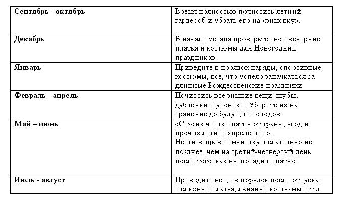 Для того чтобы ваши вещи всегда выглядели опрятными и ухоженными, мы решили опубликовать календарь-памятку по уходу за вещами - рекомендуем повесить его на холодильник!